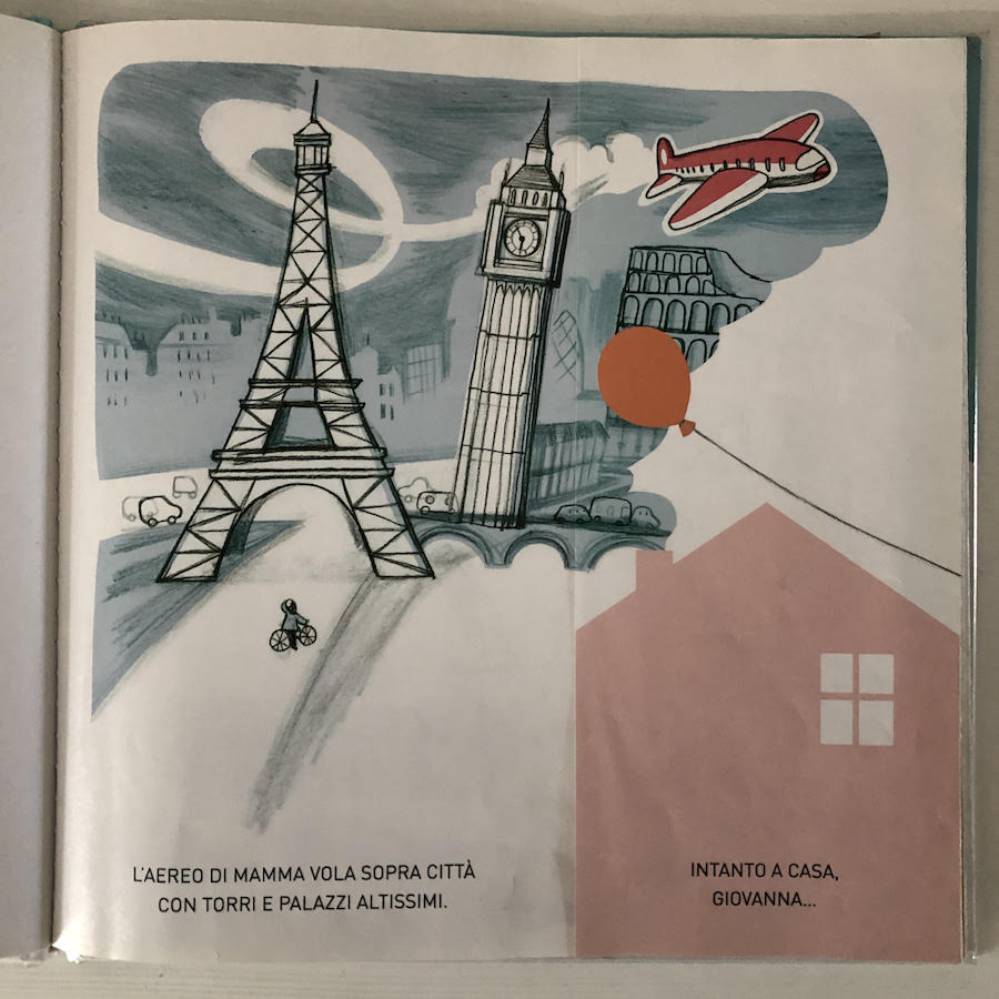 L’aspetto più interessante di questo albo illustrato è il fatto di aiutare i bambini a capire il tempo che passa, scandendo le giornate e mostrando ciò che fanno le due protagoniste: si vede la mamma in aereo e al tempo stesso quello che fa Giovanna a casa. Questo a mio parere può favorire l’idea della mamma che è presente anche se non fisicamente lì, anche per i bambini che non hanno raggiunto la costanza dell’oggetto.